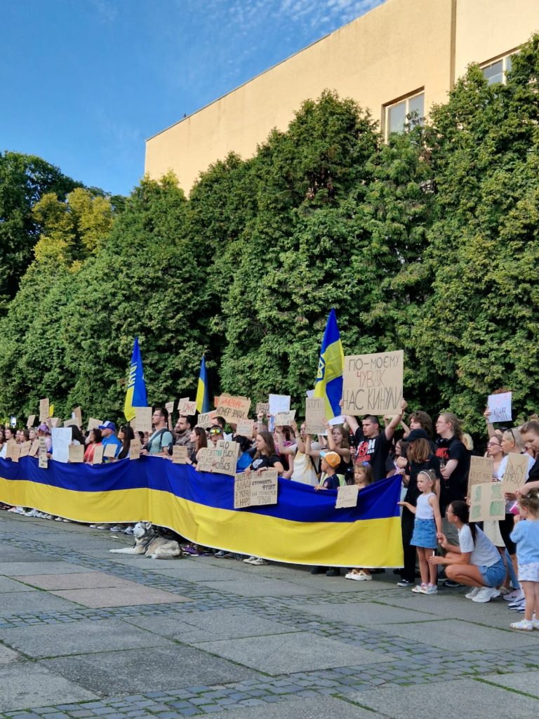 Учора сотні ужгородців зібралися на протест на площі Поштовій проти закону №12414, який обмежує незалежність НАБУ і САП. Люди взяли з собою українську символіку та плакати «Руки геть від НАБУ і САП», «Демократія — не іграшка», «Повернулися у 2014?».