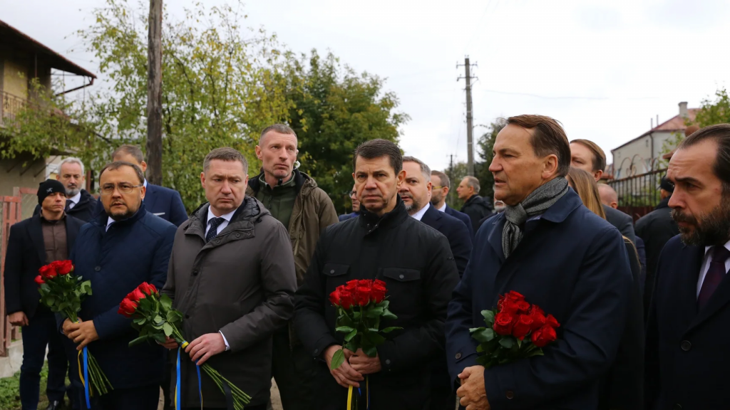 Міністр закордонних справ Польщі Радослав Сікорський 10 жовтня прибув до України з робочим візитом. Разом з українськими посадовцями він вшанував пам’ять загиблих внаслідок російського удару по Лапаївці на Львівщині.