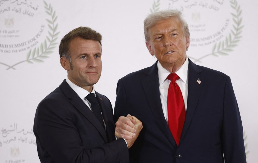 Протягом років напруга між Дональдом Трампом і Еммануелем Макроном зменшилася, але конфлікт між ними виник через те, що Макрон одним із перших визнав державу Палестина. Американський президент розцінив це рішення як винагороду за терористичний акт Хамасу 7 жовтня 2023 року. Крім того, за даними Die Welt, Дональд Трамп в Єгипті дізнався, що Еммануель Макрон сумнівався в можливості досягнення миру на Близькому Сході.